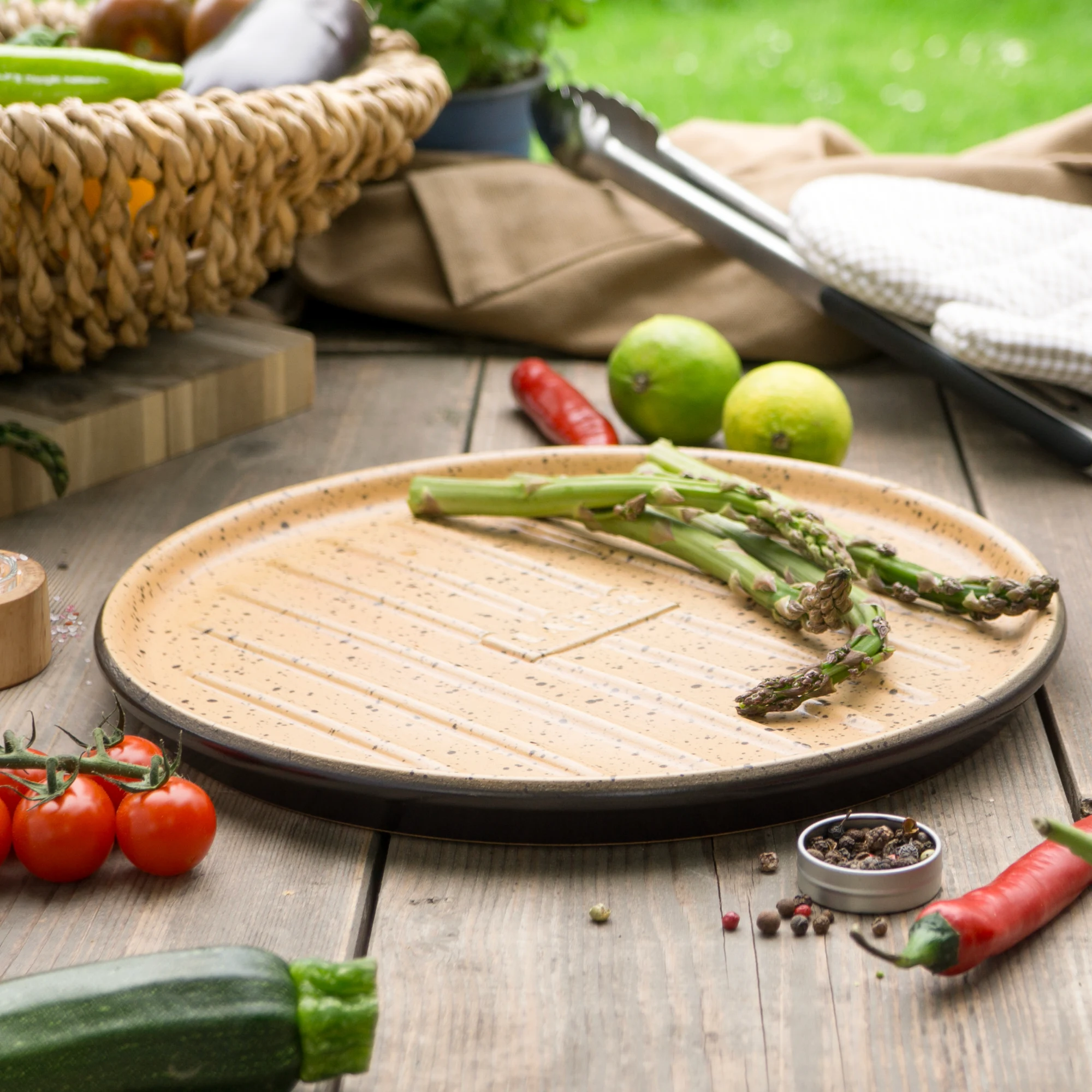 Die BBQ Grill Plancha mit Stegen rund hebt das Outdoor-Kocherlebnis auf ein neues Level. Diese moderne Plancha ist ideal für Fleisch, Fisch, Gemüse oder Grillspieße und sorgt für eine besonders gleichmäßige Hitzeverteilung. Einmal vorgeheizt, übernimmt sie den Rest fast wie von selbst.
