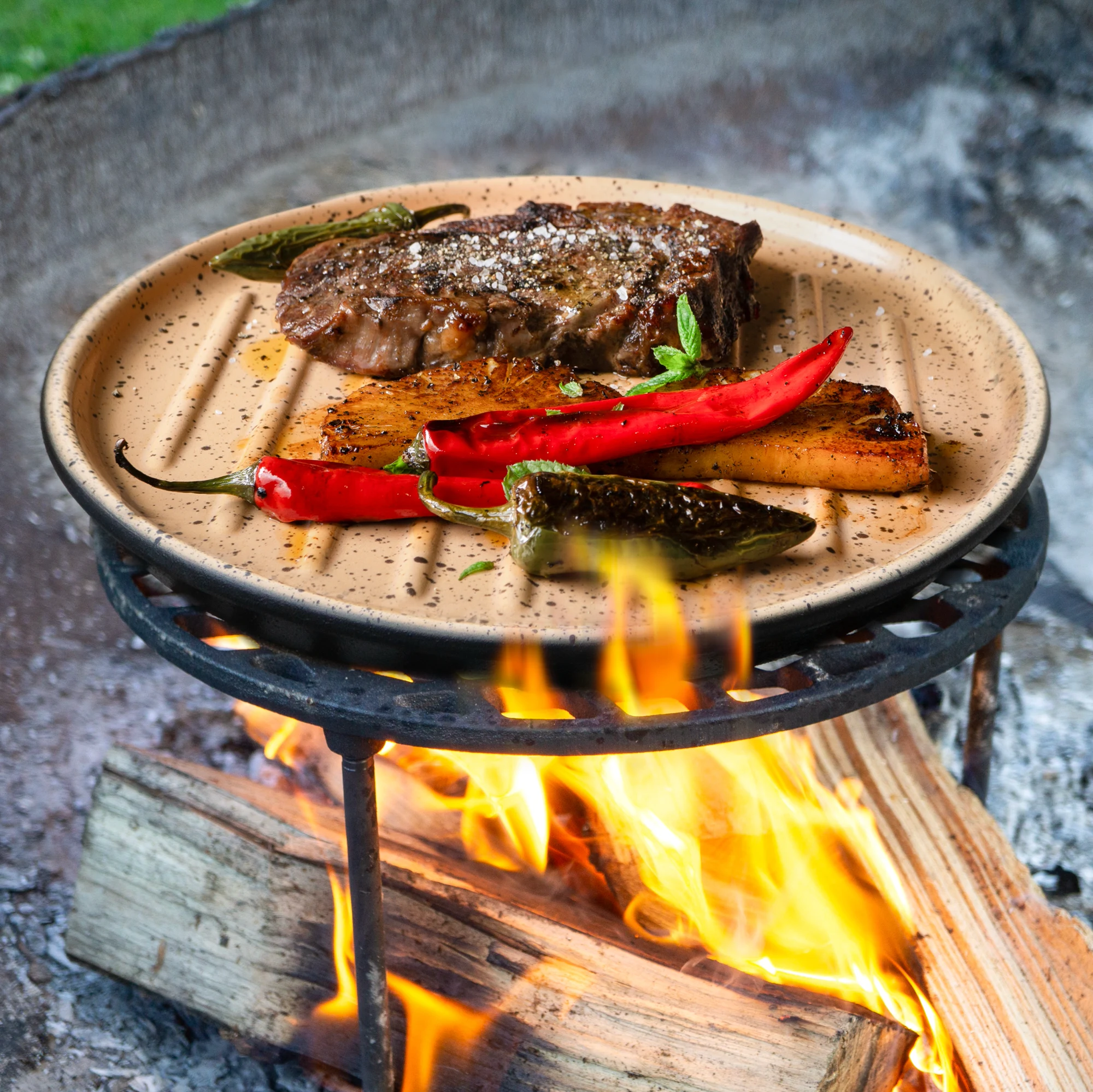 Für echte Grillfans: BBQ Grill Plancha mit Stegen rund