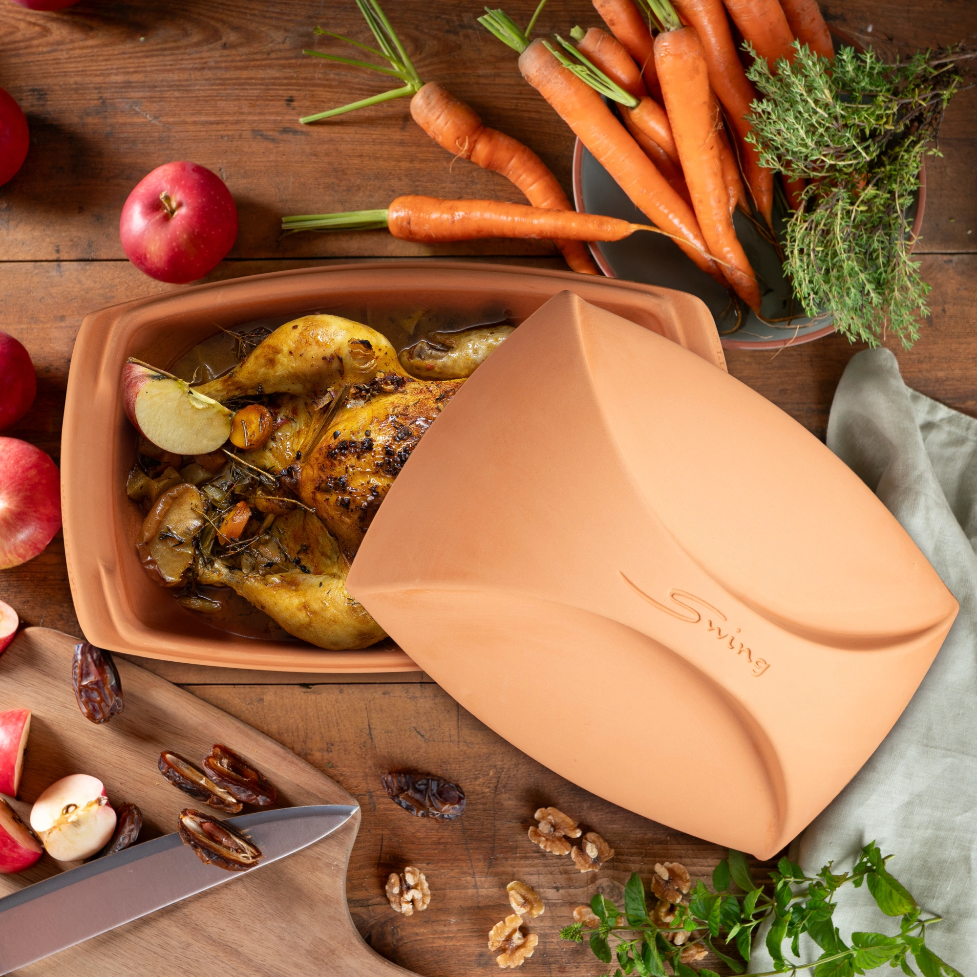 Römertopf Bräter Swing – Dampfgarer aus Naturton für bis zu 6 Personen