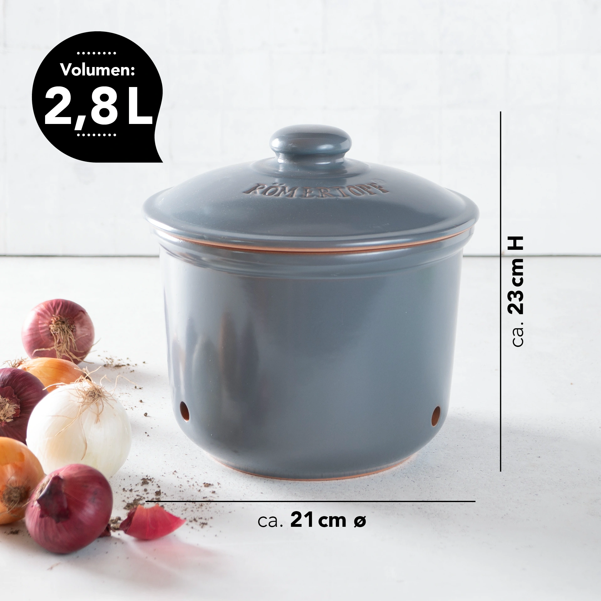 Römertopf Zwiebeltopf Frische-Topf MAXI – praktischer Vorratstopf aus Keramik
