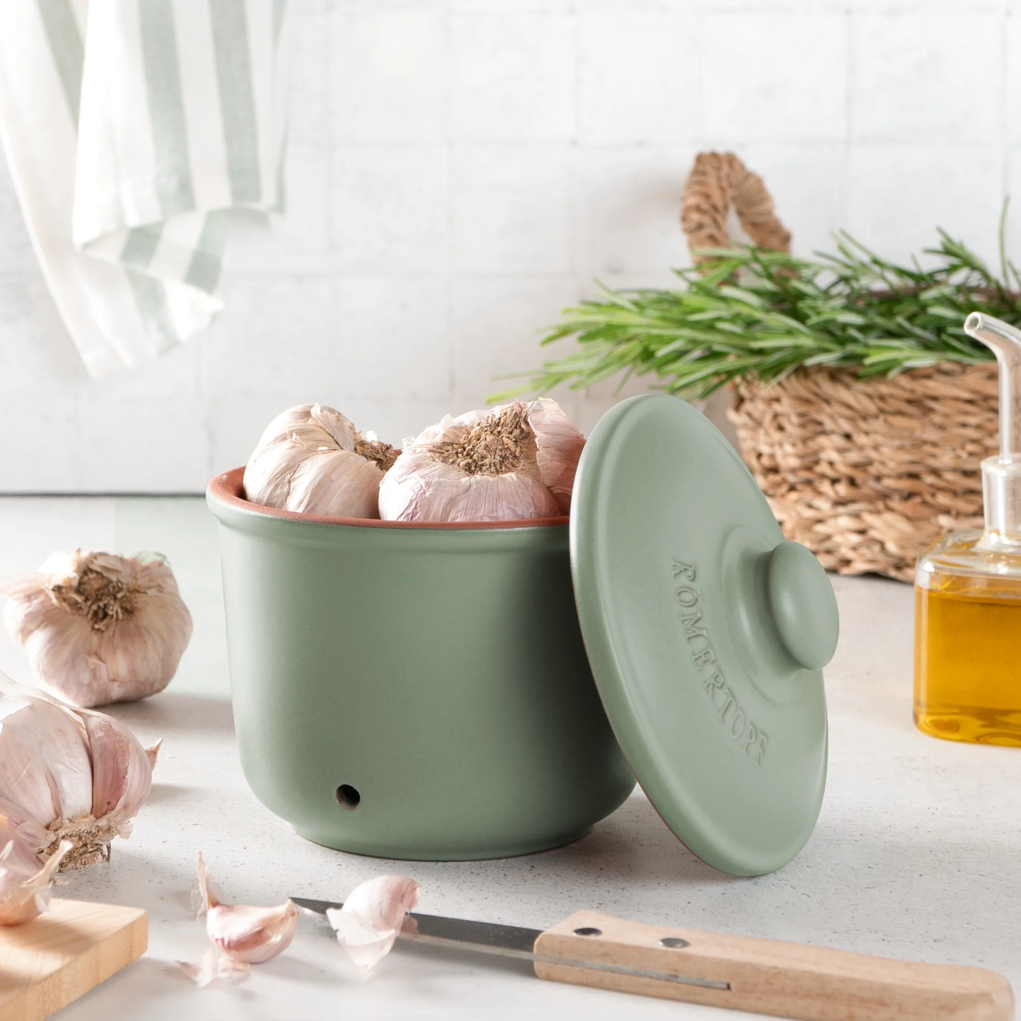 Ob klassisch Terrakotta, elegant Schwarz, modern Blaugrau oder zeitlos Weiß – der Knoblauchtopf Mini ist in vier attraktiven Farbvarianten erhältlich. So lässt er sich perfekt auf jede Kücheneinrichtung abstimmen, vom rustikalen Landhausstil bis zur modernen Designküche. Alle Ausführungen sind langlebig, pflegeleicht und spülmaschinengeeignet.
