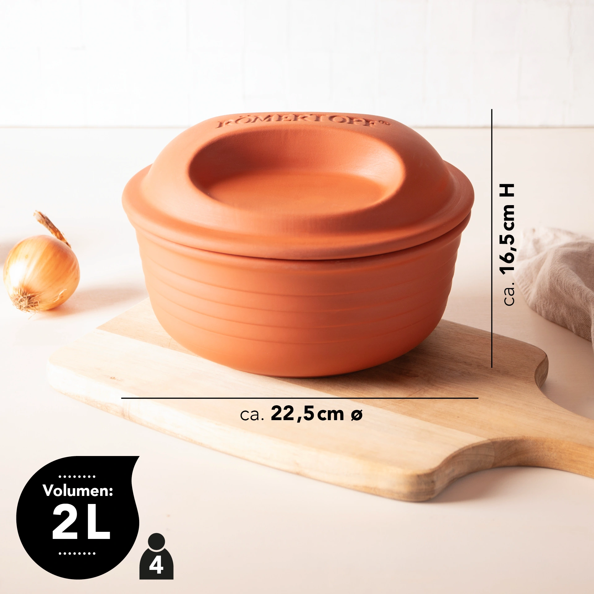 Römertopf CULINARIO Dampfgarbräter – 3 Liter für bis zu 4 Personen Tradition trifft modernes Design Der Römertopf CULINARIO Dampfgarbräter vereint die bewährte Tonqualität mit einer modernen Formensprache. Das schlichte Unterteil sorgt für Funktionalität im Alltag, während der formschöne Deckel mit markanten Proportionen nicht nur optisch überzeugt, sondern auch eine komfortable Einhandbedienung ermöglicht. Damit wird der CULINARIO Bräter zum stilvollen und praktischen Highlight in jeder Küche. Vielseitig für Alltag & Gäste Mit einem Fassungsvermögen von 3 Litern ist der Bräter perfekt für Mahlzeiten von bis zu vier Personen. Egal ob Schmorgerichte, Aufläufe, Gemüse oder Fisch – der CULINARIO sorgt für gleichmäßiges Garen und zuverlässige Ergebnisse. Auf dem Esstisch macht er ebenfalls eine gute Figur: Er dient als Serviergeschirr und hält dank seines passgenauen Deckels Speisen lange warm. Nach dem Kochen ist die Reinigung unkompliziert – per Hand oder bequem in der Spülmaschine. So verbindet die CULINARIO Serie Tradition mit moderner Handhabung und Designästhetik.
