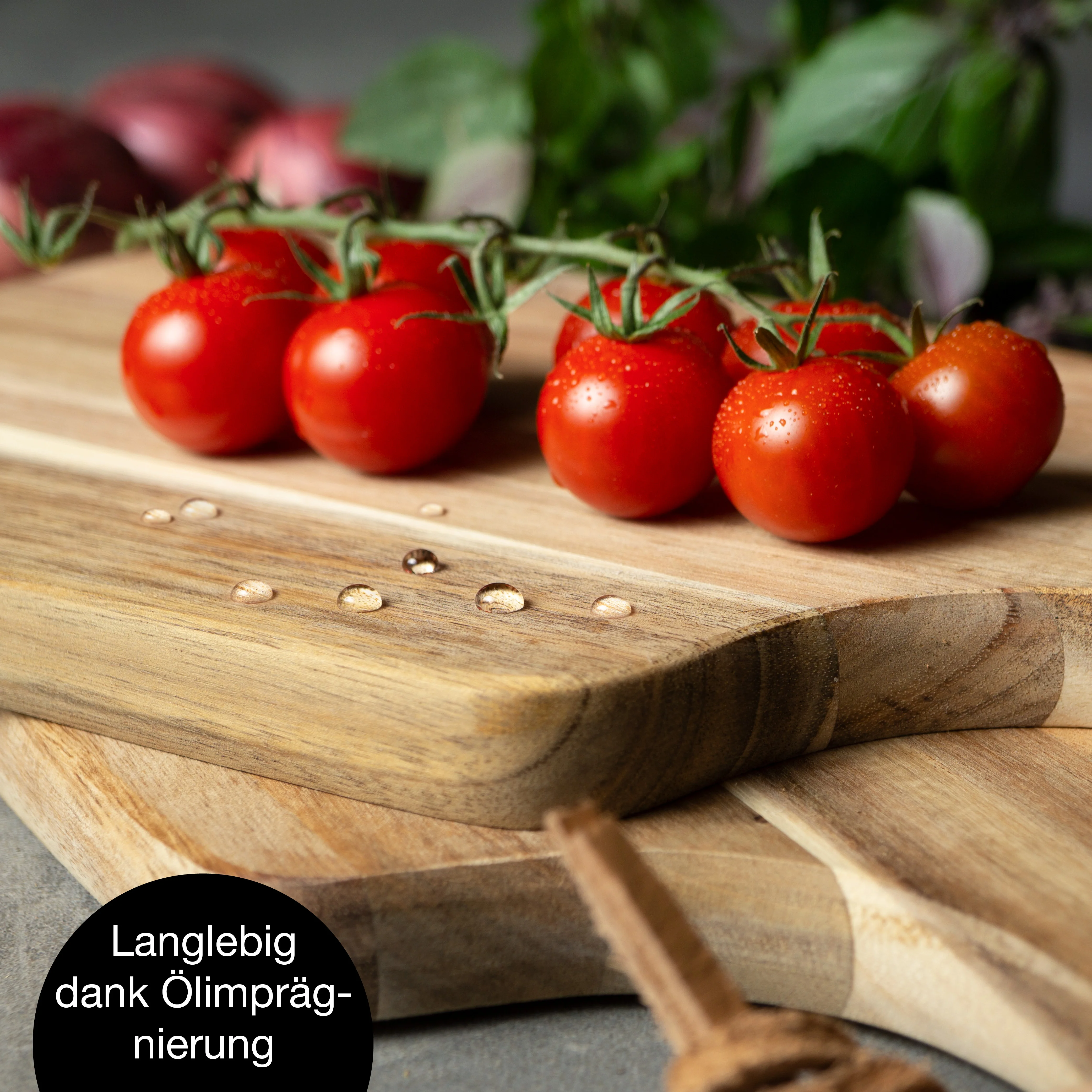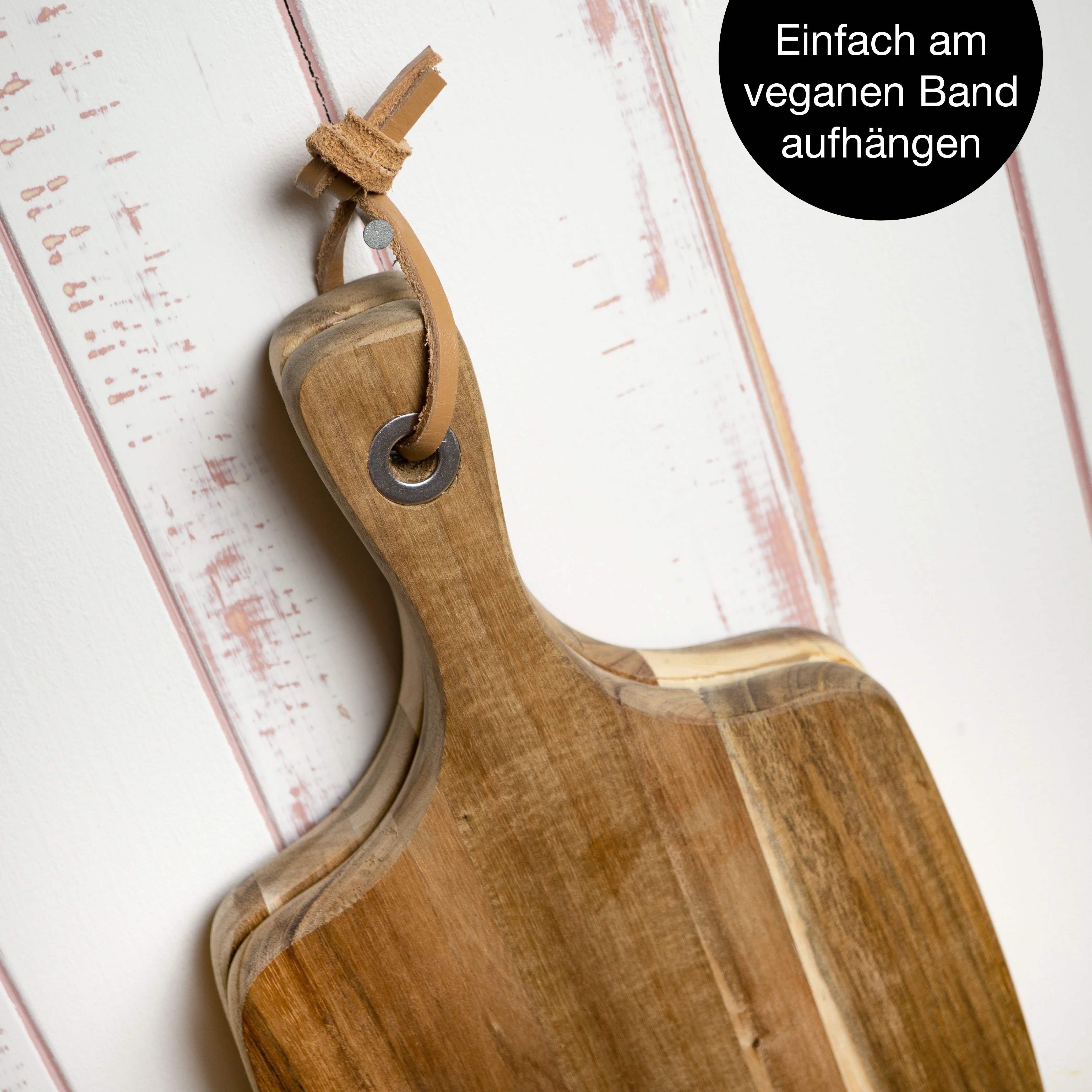 Das massive Akazienholz ist strapazierfähig, klingenschonend und mit einer ölimprägnierten, lebensmittelechten Oberfläche veredelt. So vereint das Brett Hygiene, Funktionalität und Langlebigkeit in einem. Mit praktischem Griff und Lederschnur zum Aufhängen wird es zum Blickfang in jeder Küche.