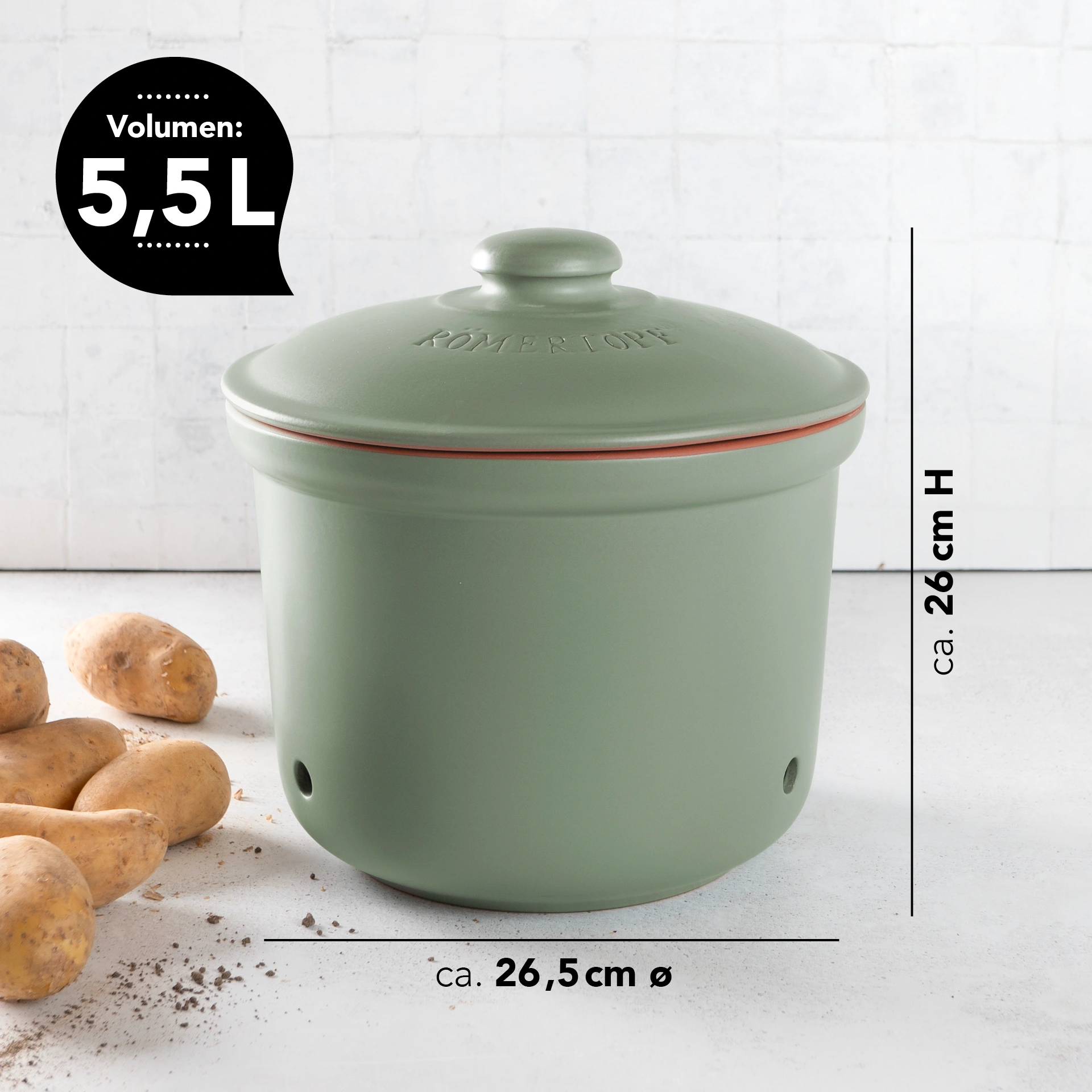 Der Römertopf Kartoffeltopf Maxi Plus ist die perfekte Aufbewahrungslösung für alle, die größere Mengen Kartoffeln oder anderes Gemüse lagern möchten. Mit einem Fassungsvermögen von 5,5 Litern bietet er reichlich Platz und ist damit ideal für Familienhaushalte oder alle, die Wert auf Vorratshaltung legen.