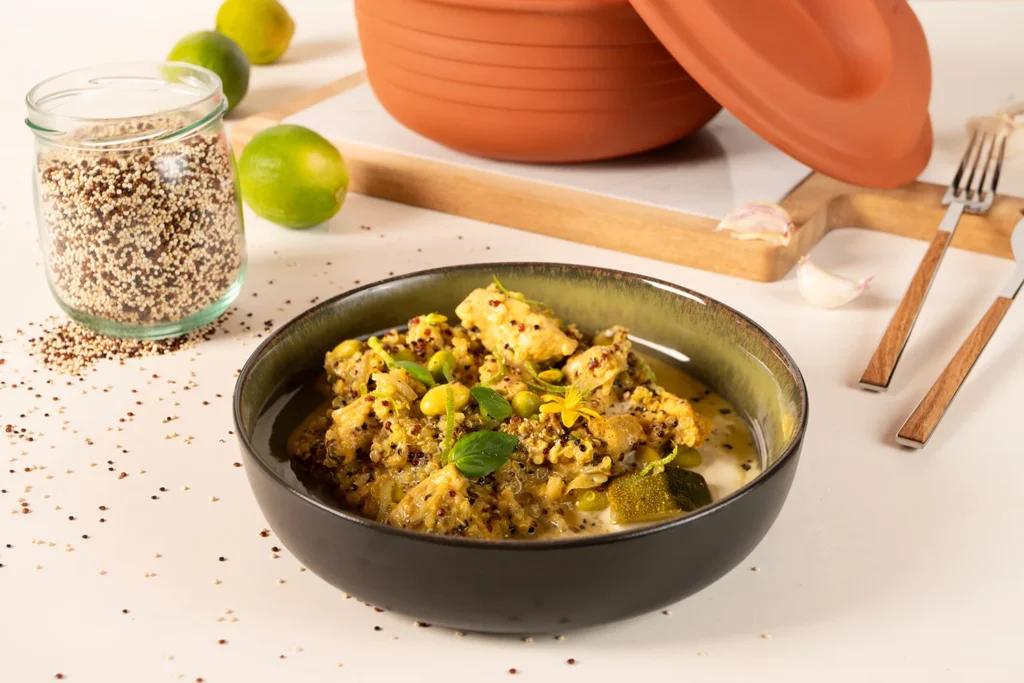 Reis „Biryani“-Style mit Hähnchenschenkeln – Aromatisches Mikrowellen-Rezept im Römertopf