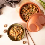 Der Römertopf Multi-Bräter ermöglicht es, alle Zutaten nach dem Anbraten in einem einzigen Gefäß schonend und gleichmäßig zu garen. Die Mikrowelle sorgt für eine konstante Hitze, sodass Pasta und Gemüse gleichzeitig perfekt gegart werden, ohne dass man ständig umrühren muss. Durch diese Garmethode bleiben die Farben des Gemüses kräftig, die Pasta al dente und die Aromen voll erhalten. Gleichzeitig spart man Zeit und Abwasch – ideal für ein unkompliziertes, aber geschmacklich ausgereiftes Gericht.