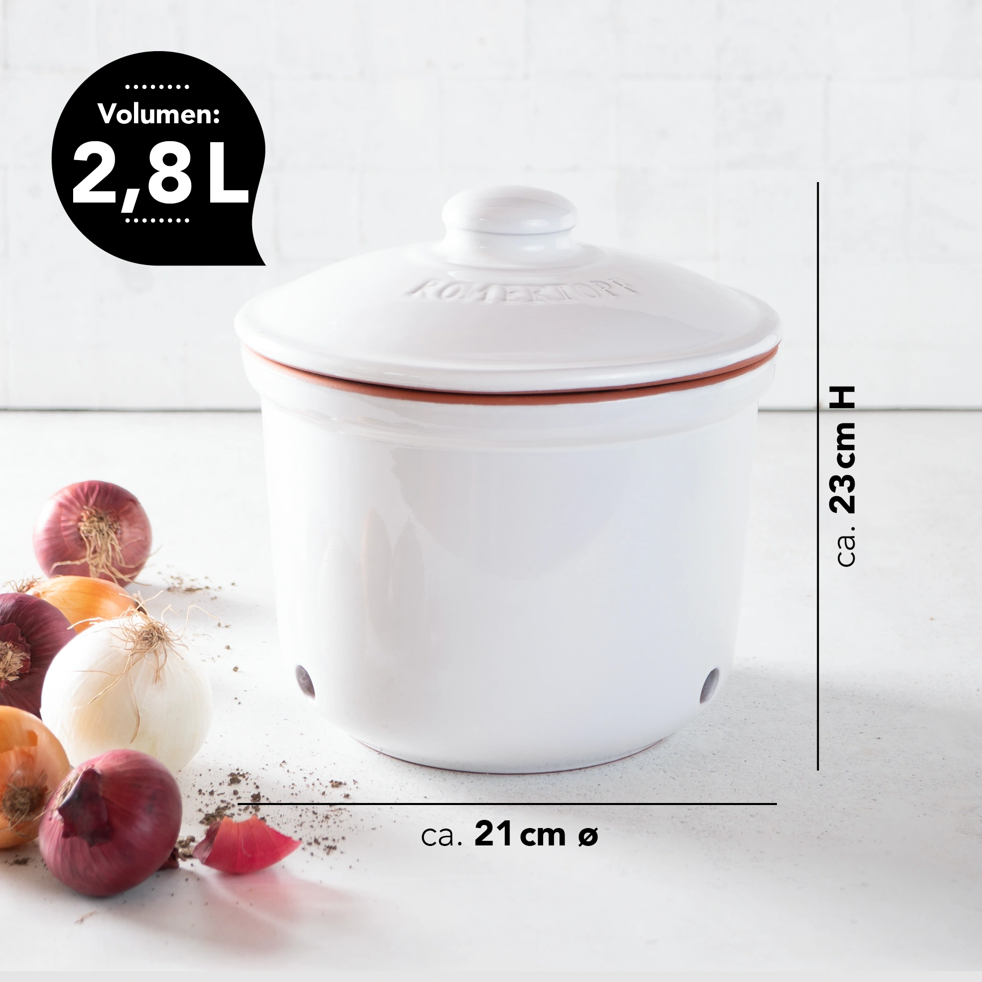 Römertopf Zwiebeltopf Frische-Topf MAXI – praktischer Vorratstopf aus Keramik